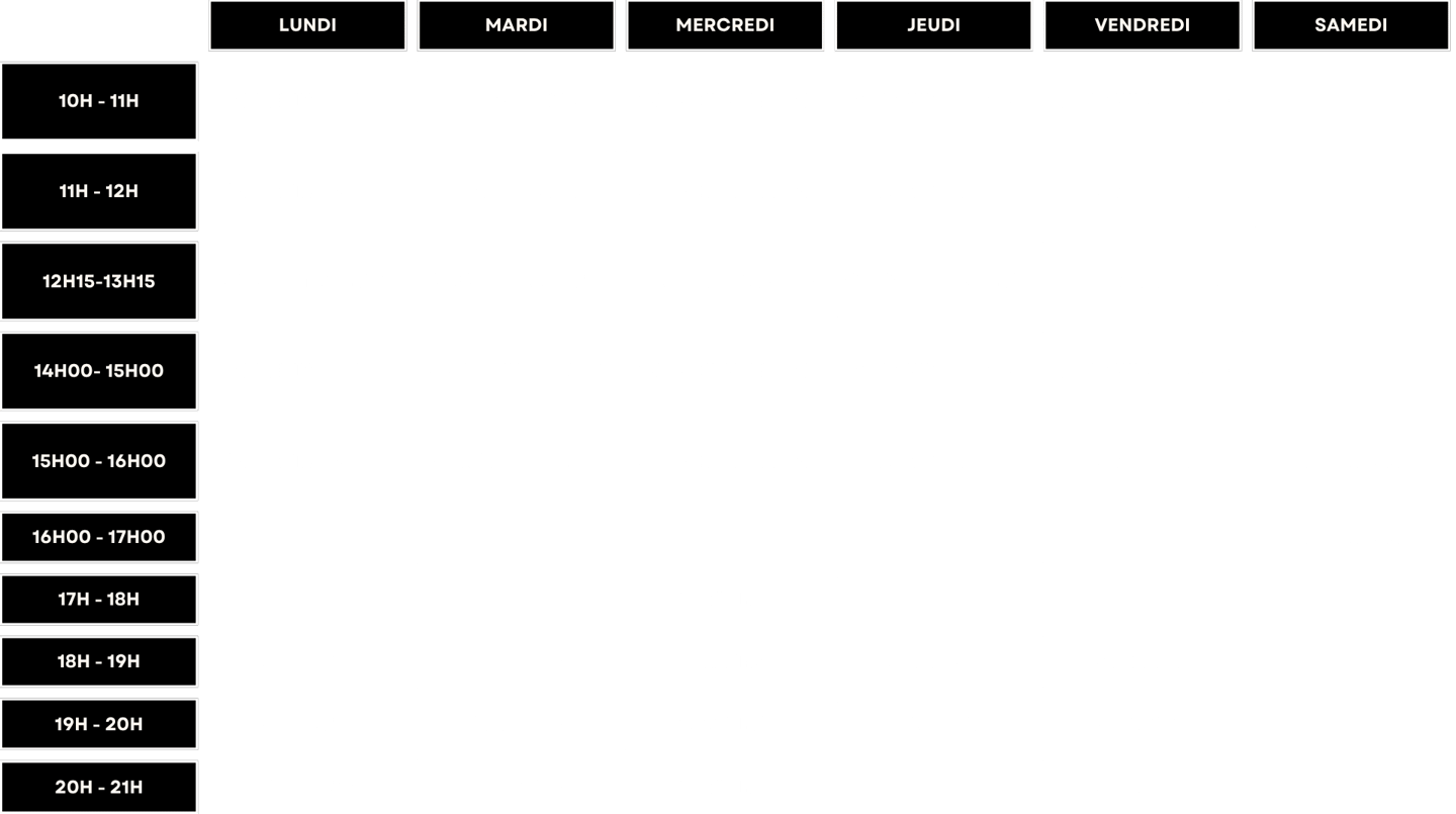 En complément, nos séances de cross-training allient renforcement musculaire, cardio et condition physique générale, dans une ambiance motivante et conviviale.